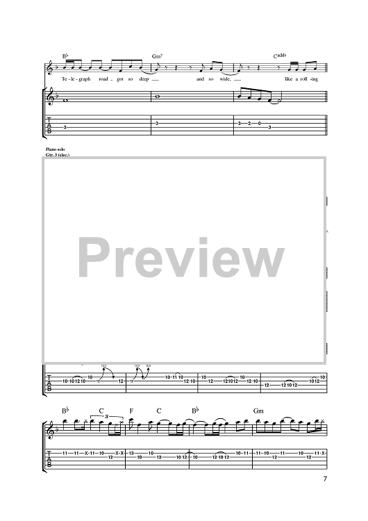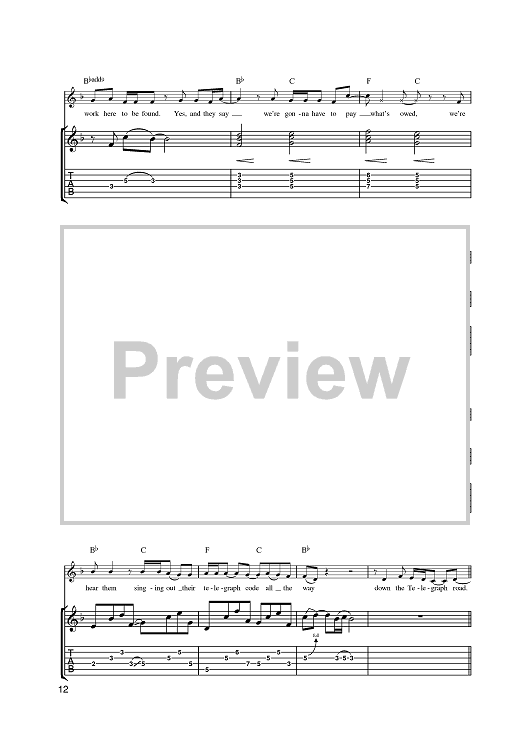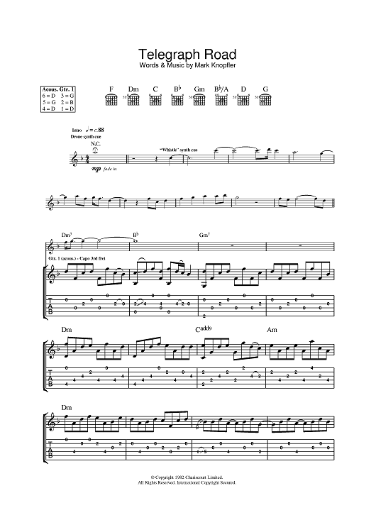 Digital Sheet Music for Telegraph Road by Mark Knopfler, Dire Straits scored for Guitar Tab; id:388463