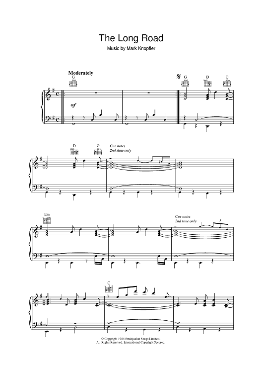 Digital Sheet Music for The Long Road by Mark Knopfler scored for Piano; id:394497