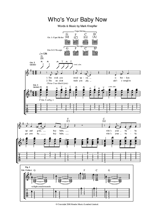 Digital Sheet Music for Who's Your Baby Now by Mark Knopfler scored for Guitar Tab; id:401278
