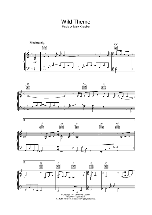 Digital Sheet Music for Wild Theme by Mark Knopfler scored for Piano; id:394506