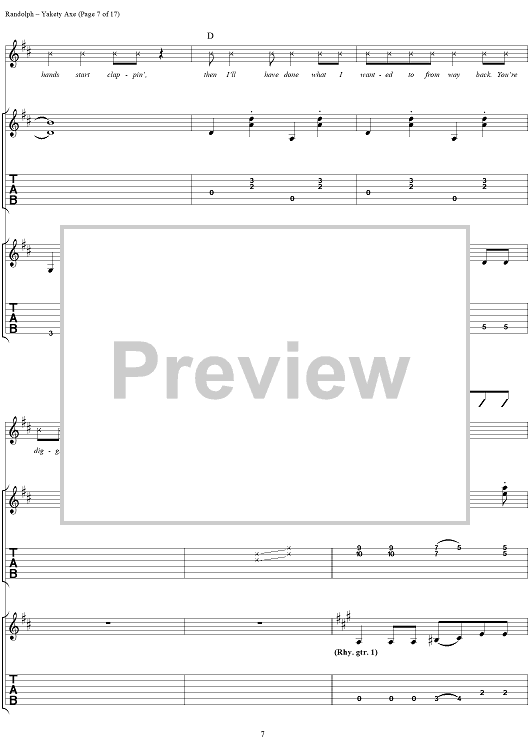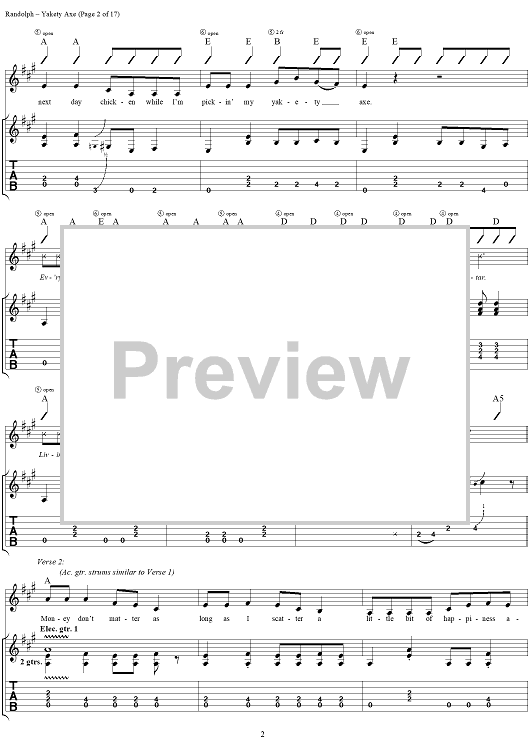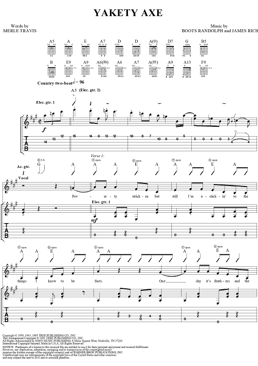 Digital Sheet Music for Yakety Axe by Chet Atkins, Mark Knopfler, Merle Travis, Boots Randolph, James Rich scored for Guitar Tab/Vocal/Chords; id:255325