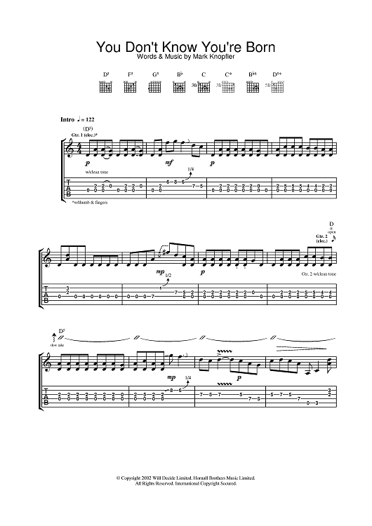 "You Don't KnowYou're Born" Sheet Music by Mark Knopfler