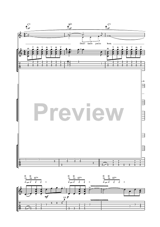 Digital Sheet Music for You Don't KnowYou're Born by Mark Knopfler scored for Guitar Tab; id:377984
