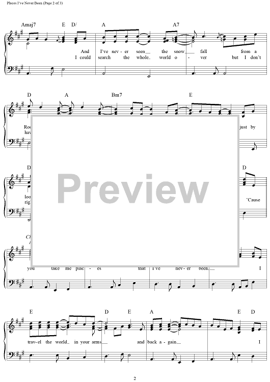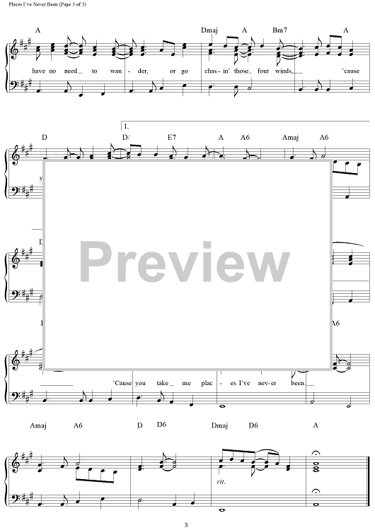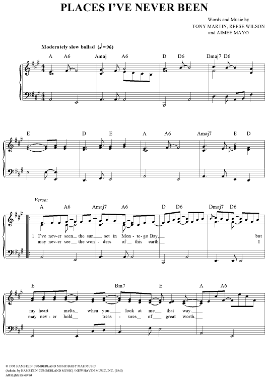 Digital Sheet Music for Places I've Never Been by Mark Wills, Tony Martin, Reese Wilson, Aimee Mayo scored for Piano/Vocal/Chords; id:112206