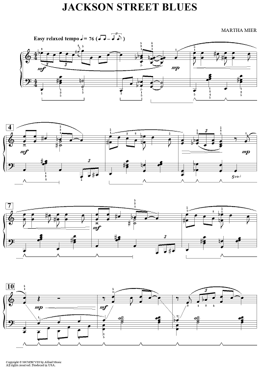 "Jackson Street Blues" Sheet Music by Martha Mier