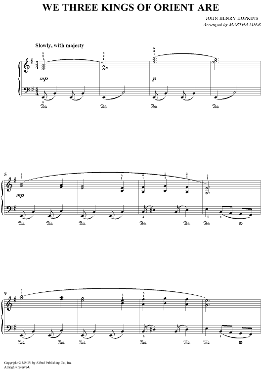 Digital Sheet Music for We Three Kings Of Orient Are by Martha Mier, John Henry Hopkins scored for Piano; id:462945