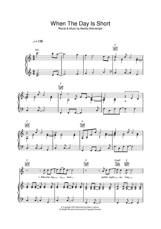 Digital Sheet Music for When The Day Is Short by Martha Wainwright scored for Piano/Vocal/Chords; id:401432