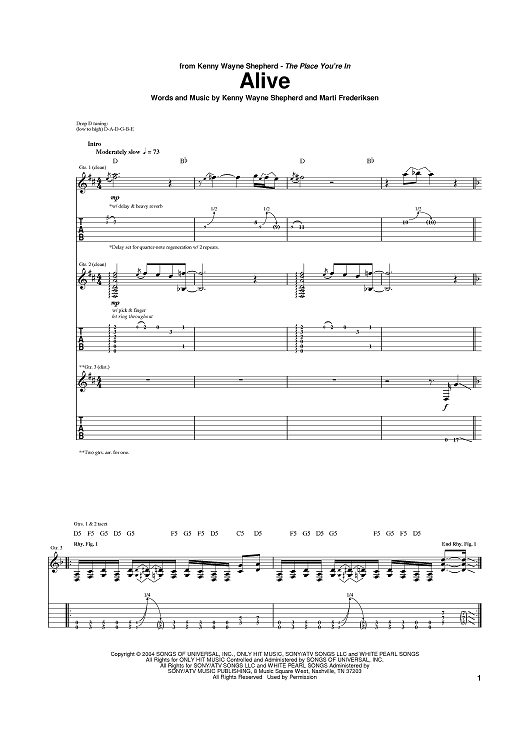 Digital Sheet Music for Alive by Kenny Wayne Shepherd, Marti Frederiksen scored for Guitar Tab; id:381566