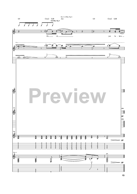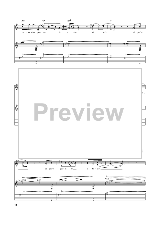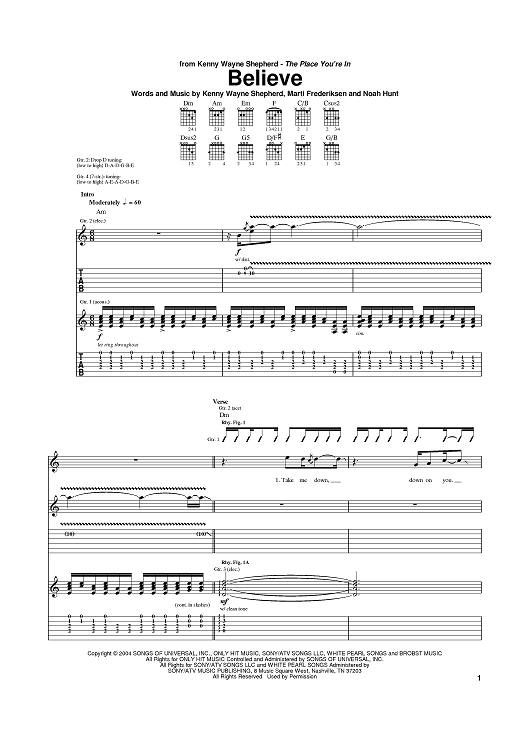 Digital Sheet Music for Believe by Kenny Wayne Shepherd, Noah Hunt, Marti Frederiksen scored for Guitar Tab; id:383146