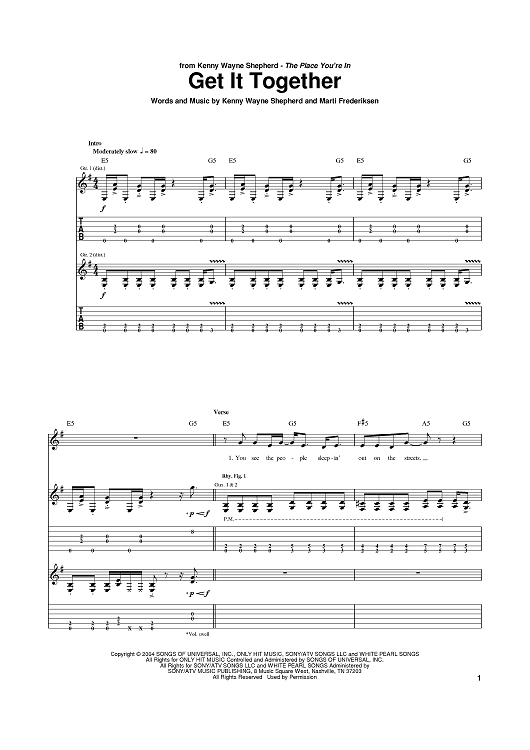 Digital Sheet Music for Get It Together by Kenny Wayne Shepherd, Marti Frederiksen scored for Guitar Tab; id:383142