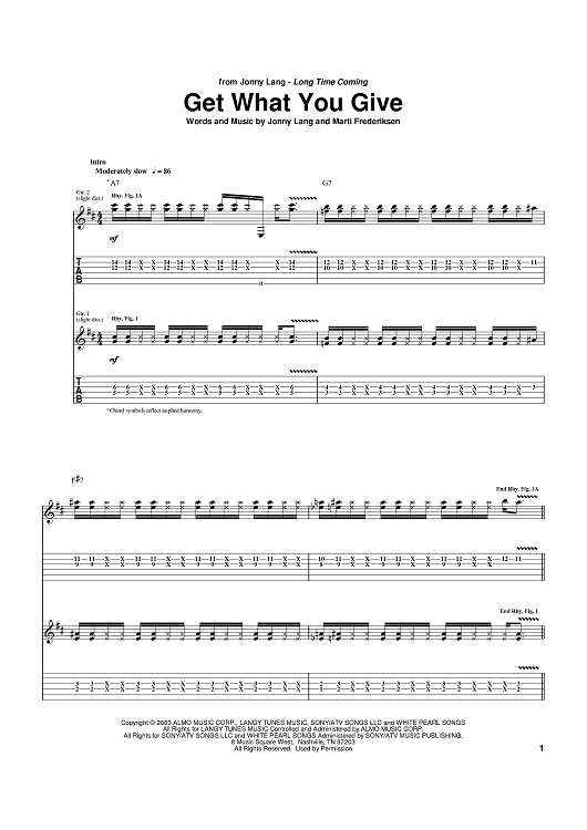 Digital Sheet Music for Get What You Give by Jonny Lang, Marti Frederiksen scored for Guitar Tab; id:373991
