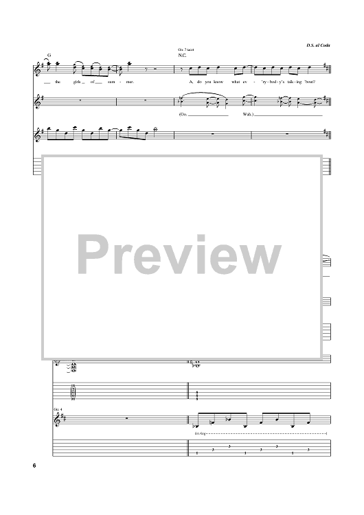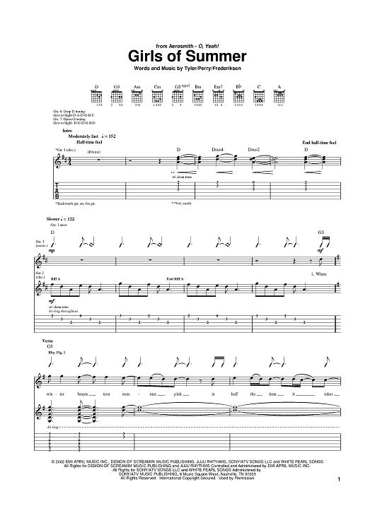 Digital Sheet Music for Girls Of Summer by Aerosmith, Steven Tyler, Joe Perry, Marti Frederiksen scored for Guitar Tab; id:387910