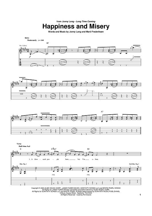 Digital Sheet Music for Happiness And Misery by Jonny Lang, Marti Frederiksen scored for Guitar Tab; id:373993