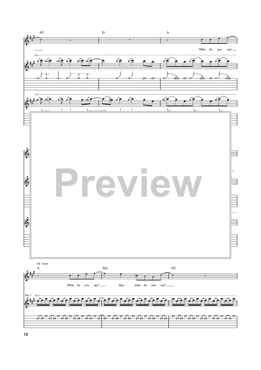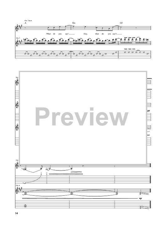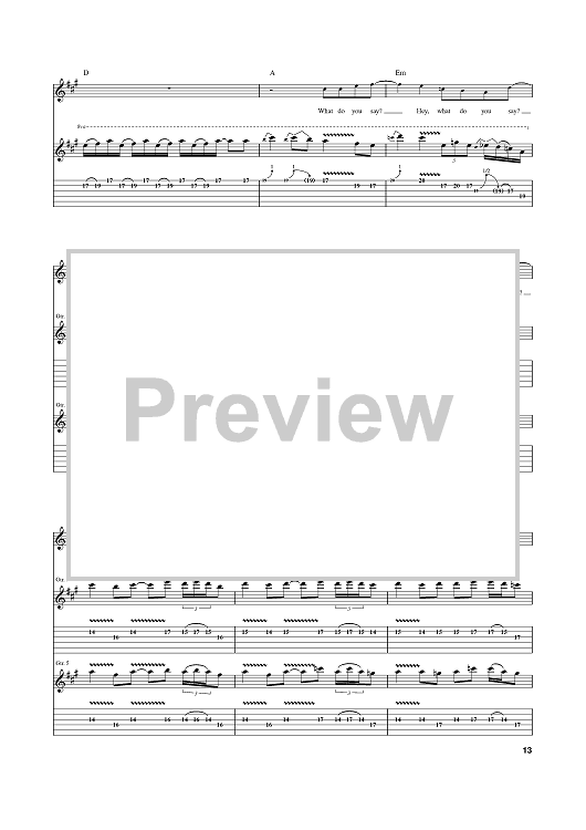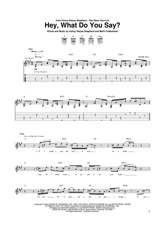 Digital Sheet Music for Hey, What Do You Say? by Kenny Wayne Shepherd, Marti Frederiksen scored for Guitar Tab; id:383143