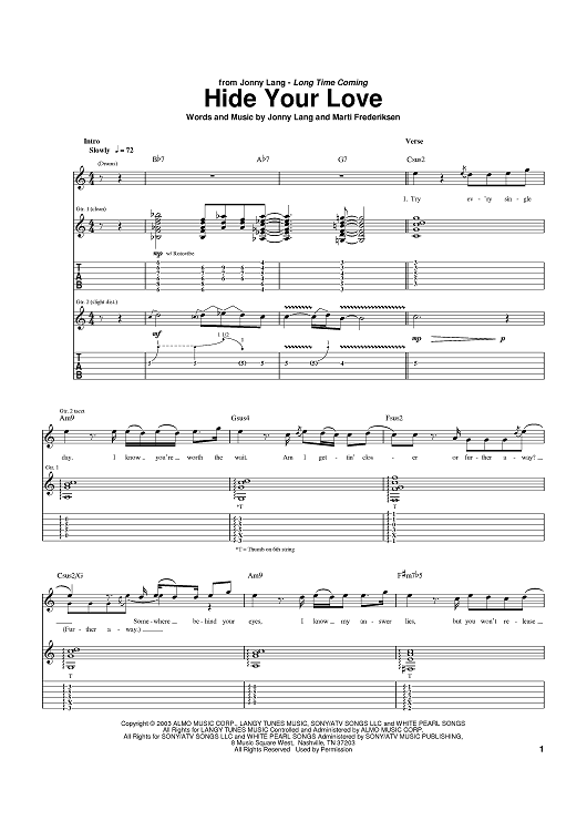 Digital Sheet Music for Hide Your Love by Jonny Lang, Marti Frederiksen scored for Guitar Tab; id:373994