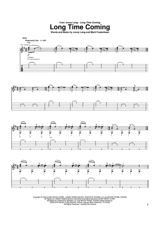 Digital Sheet Music for Long Time Coming by Jonny Lang, Marti Frederiksen scored for Guitar Tab; id:373996