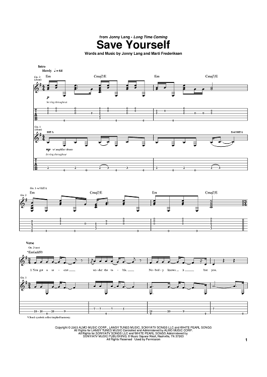Digital Sheet Music for Save Yourself by Jonny Lang, Marti Frederiksen scored for Guitar Tab; id:373998
