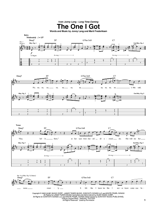 Digital Sheet Music for The One I Got by Jonny Lang, Marti Frederiksen scored for Guitar Tab; id:373997