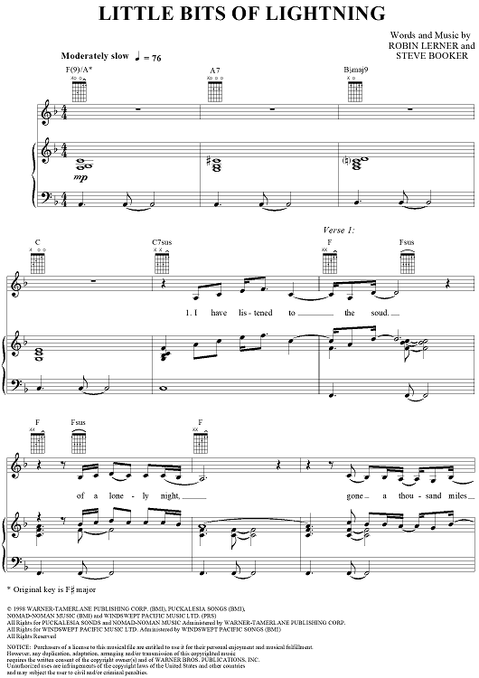 Digital Sheet Music for Little Bits of Lightning by Robin Lerner, Steve Booker, Martina McBride scored for Piano/Vocal/Chords; id:250289