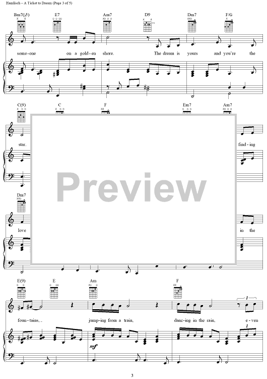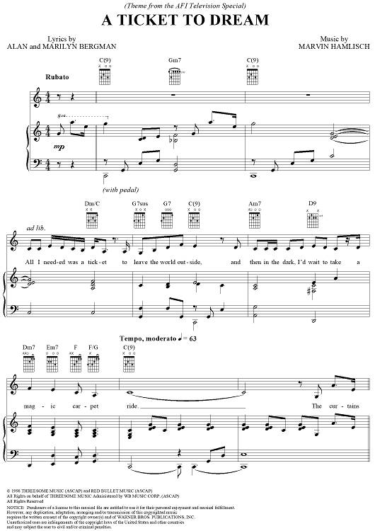Digital Sheet Music for A Ticket to Dream by Marvin Hamlisch, Alan Bergman, Marilyn Bergman scored for Piano/Vocal/Chords; id:204375