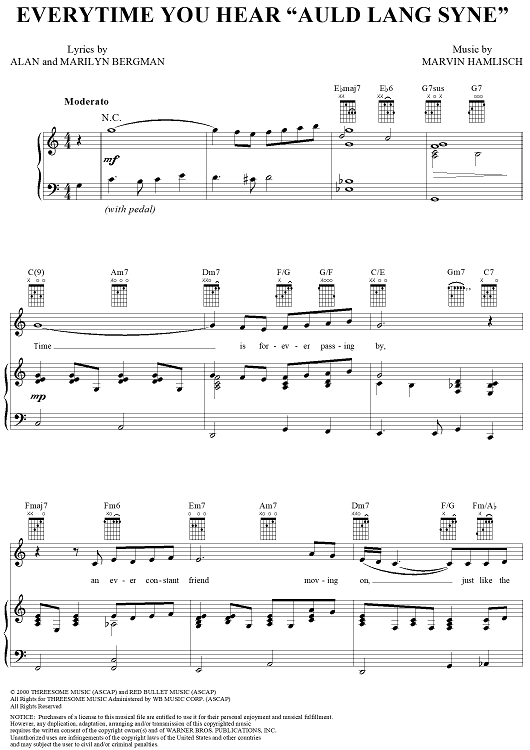 Digital Sheet Music for Everytime You Hear "Auld Lang Syne" by Marvin Hamlisch, Alan Bergman, Marilyn Bergman, Barbra Streisand scored for Piano/Vocal/Chords; id:241025