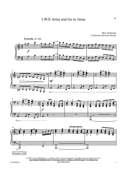 Digital Sheet Music for I Will Arise and Go To Jesus by Traditional American Melody, Mary McDonald scored for Piano Solo; id:433825