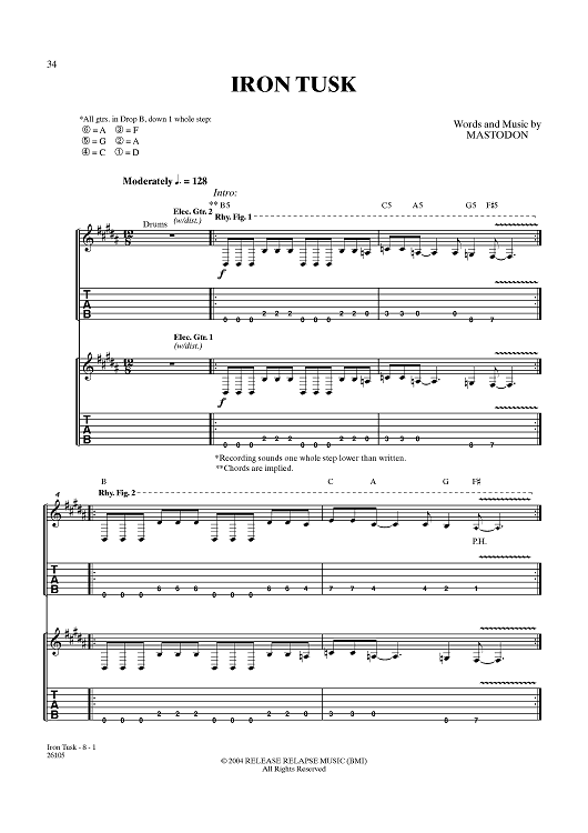 Digital Sheet Music for Iron Tusk by Mastodon scored for Guitar Tab/Vocal; id:360815