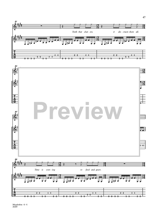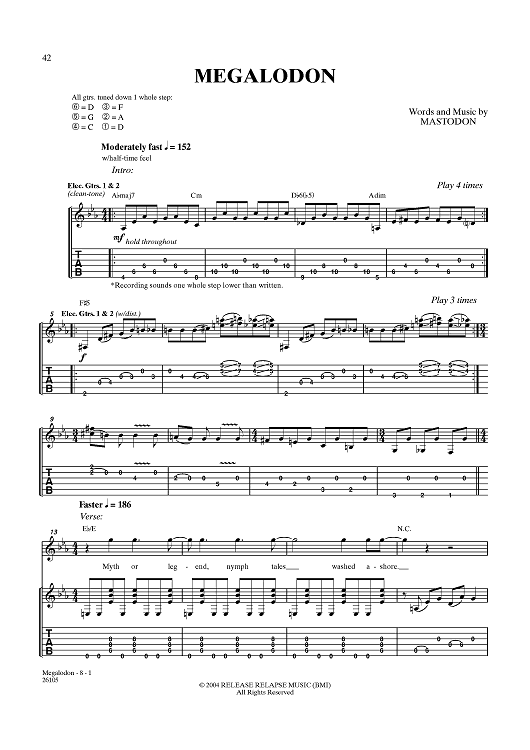 Digital Sheet Music for Megalodon by Mastodon scored for Guitar Tab/Vocal; id:360816