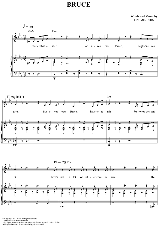Digital Sheet Music for Bruce by Tim Minchin scored for Piano/Vocal/Chords; id:438966