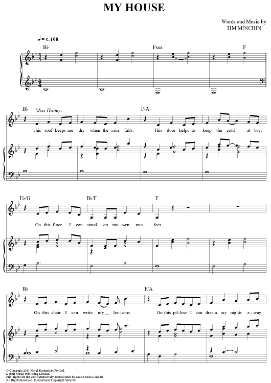 Digital Sheet Music for My House by Tim Minchin scored for Piano/Vocal/Chords; id:438971