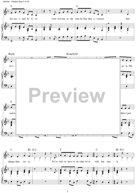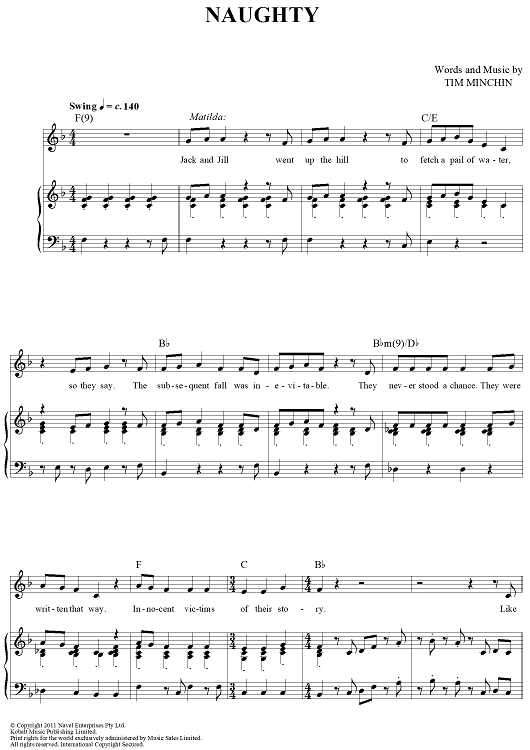 Digital Sheet Music for Naughty by Tim Minchin scored for Piano/Vocal/Chords; id:439647