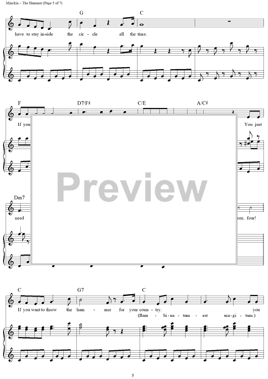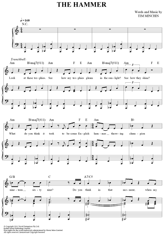 Digital Sheet Music for The Hammer by Tim Minchin scored for Piano/Vocal/Chords; id:439653