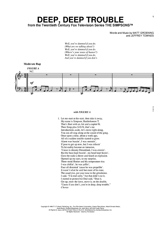 Digital Sheet Music for Deep, Deep Trouble by Matt Groening, Jazzy Jeff scored for Piano/Vocal/Chords; id:394061