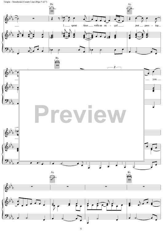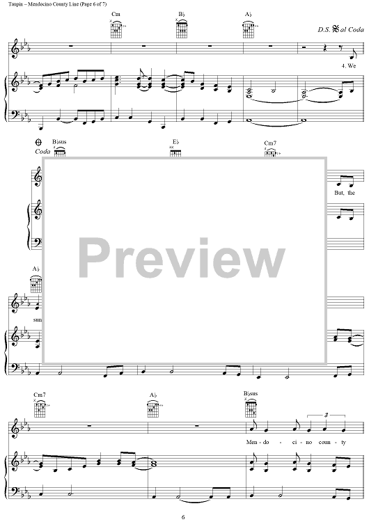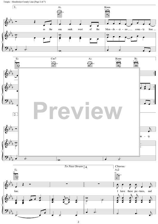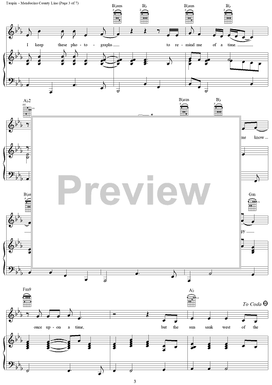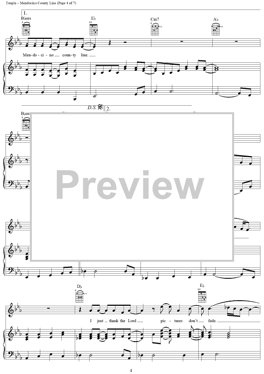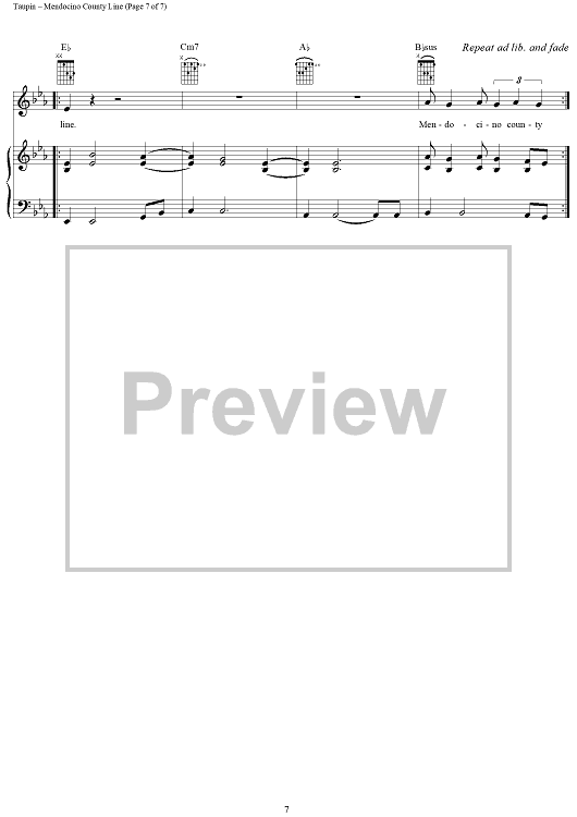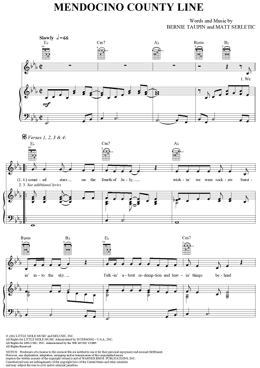 Digital Sheet Music for Mendocino County Line by Bernie Taupin, Matt Serletic, Willie Nelson scored for Piano/Vocal/Chords; id:289624