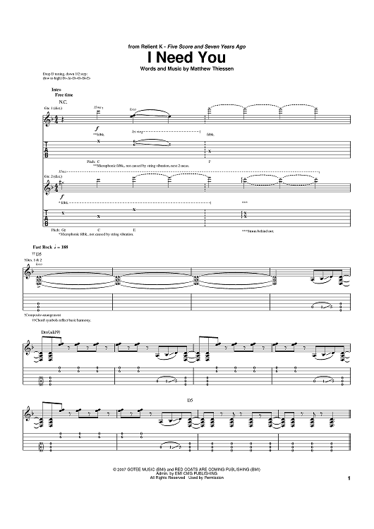 Digital Sheet Music for I Need You by Relient K, Matt Thiessen scored for Guitar Tab; id:397521