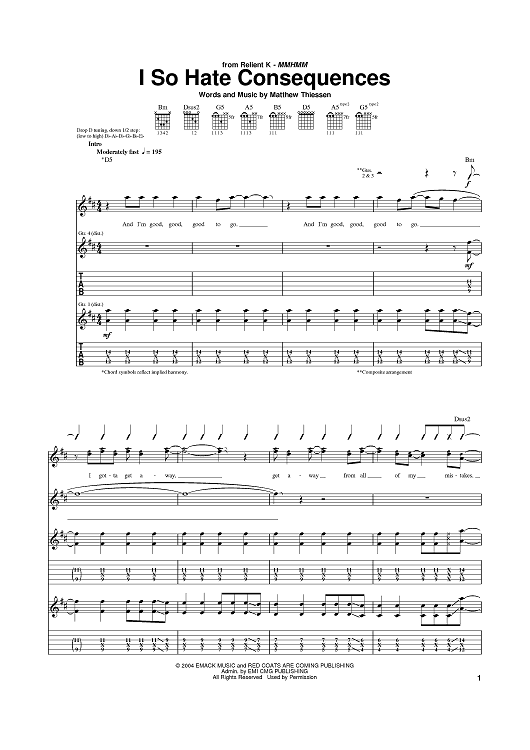 Digital Sheet Music for I So Hate Consequences by Relient K, Matt Thiessen scored for Guitar Tab; id:384409