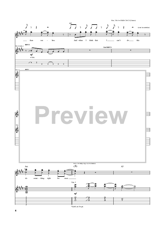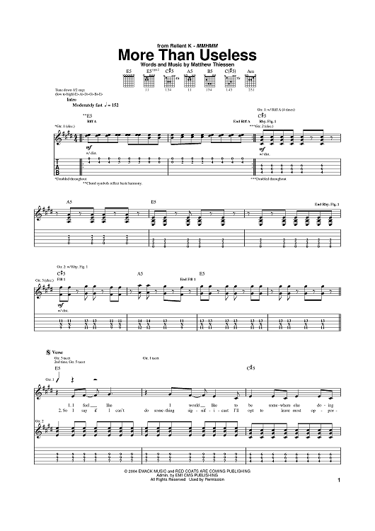 Digital Sheet Music for More Than Useless by Relient K, Matt Thiessen scored for Guitar Tab; id:384406