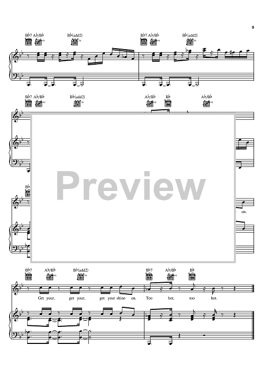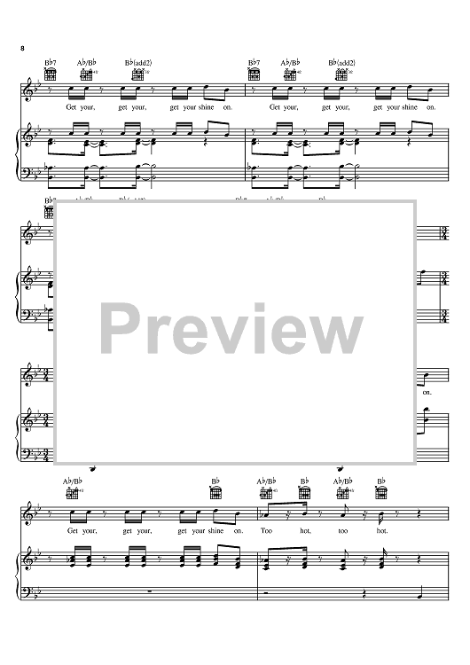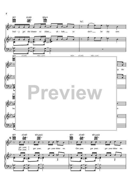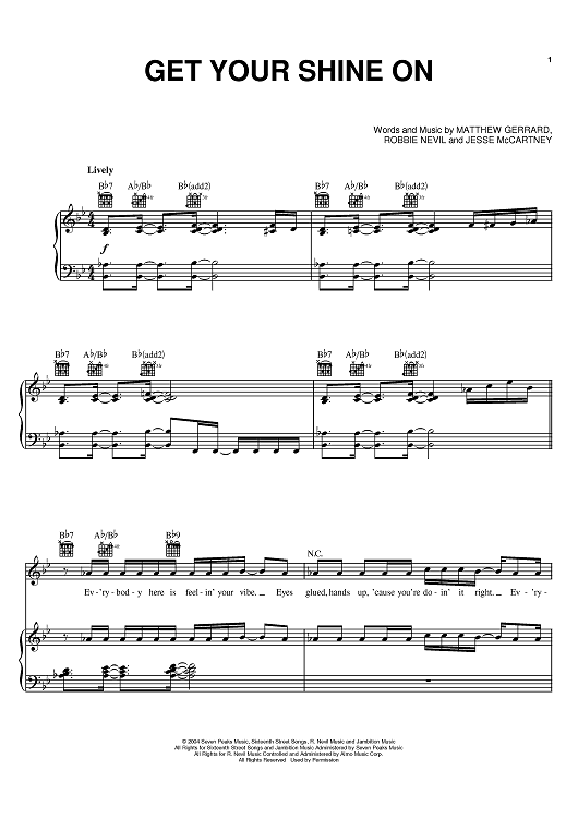 Digital Sheet Music for Get Your Shine On by Matthew Gerrard, Robbie Nevil, Jesse McCartney scored for Piano/Vocal/Chords; id:384093