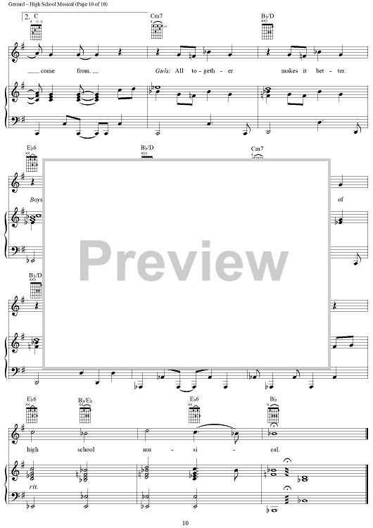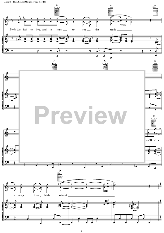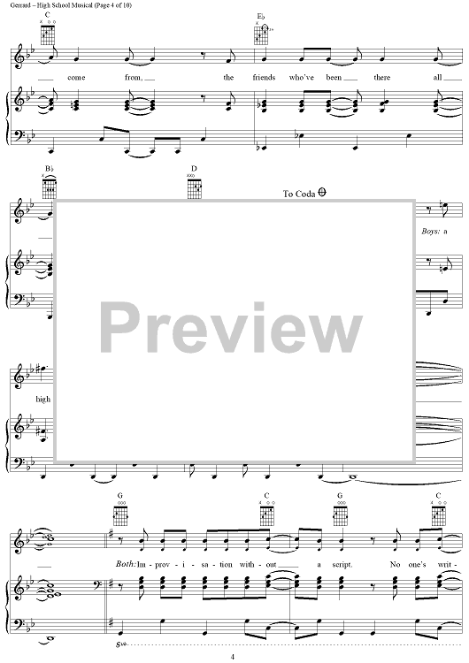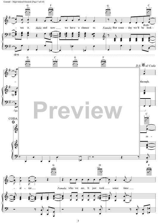 Digital Sheet Music for High School Musical by Matthew Gerrard, Robbie Nevil scored for Piano/Vocal/Chords; id:404971
