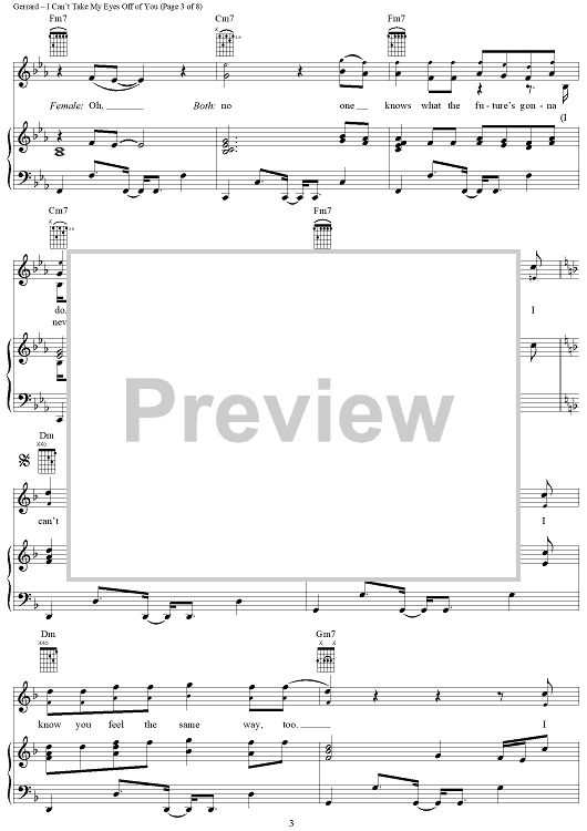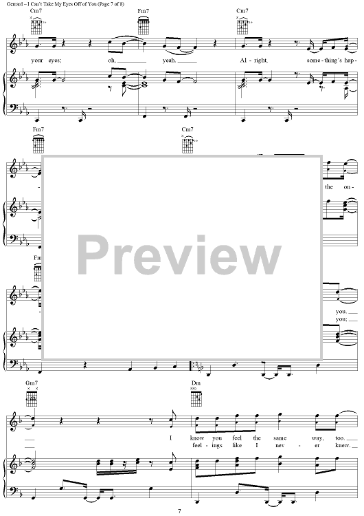 Digital Sheet Music for I Can't Take My Eyes Off of You by Matthew Gerrard, Robbie Nevil scored for Piano/Vocal/Chords; id:366953