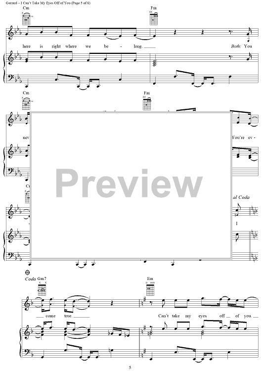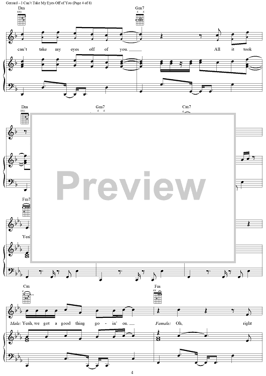"I Can't Take My Eyes Off of You" Sheet Music by Matthew Gerrard