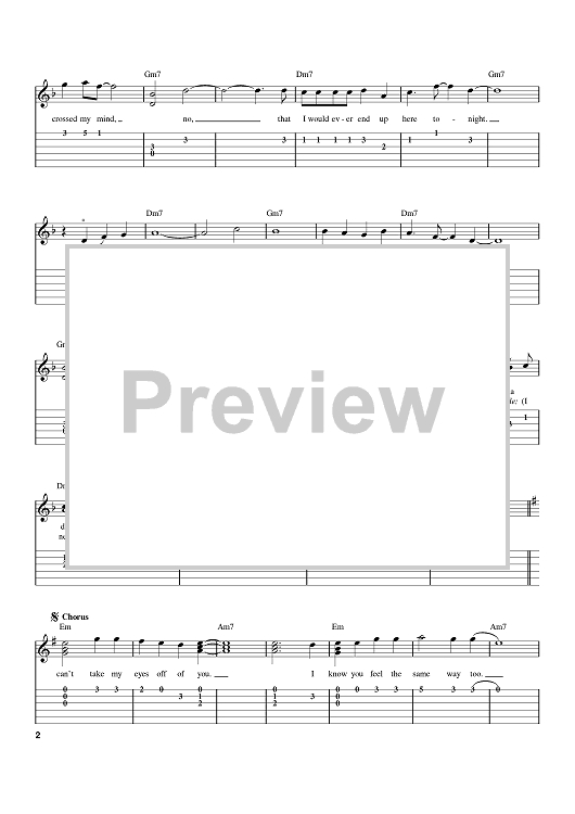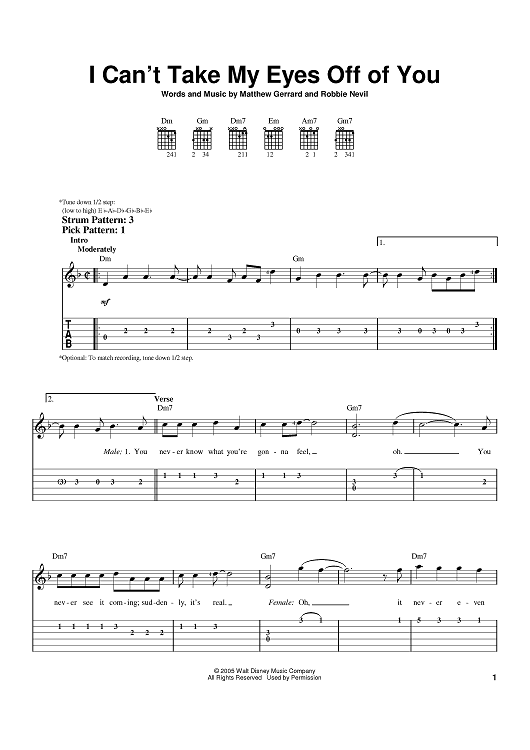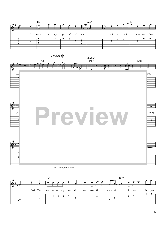 Digital Sheet Music for I Can't Take My Eyes Off Of You by Matthew Gerrard, Robbie Nevil scored for Easy Guitar Tab; id:402253