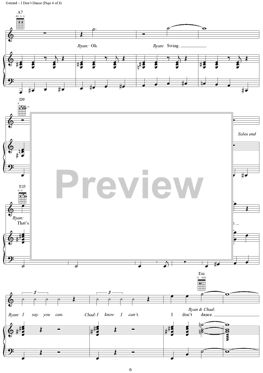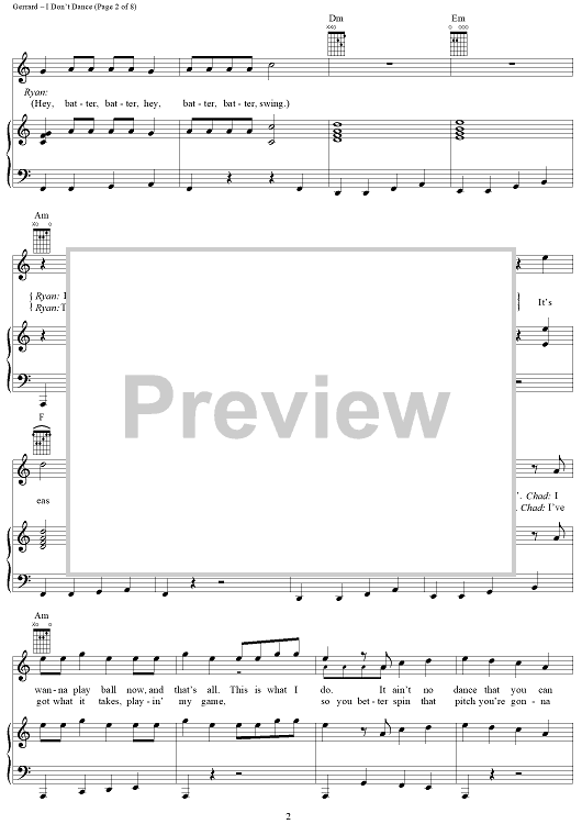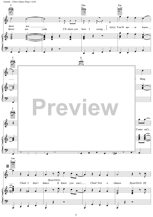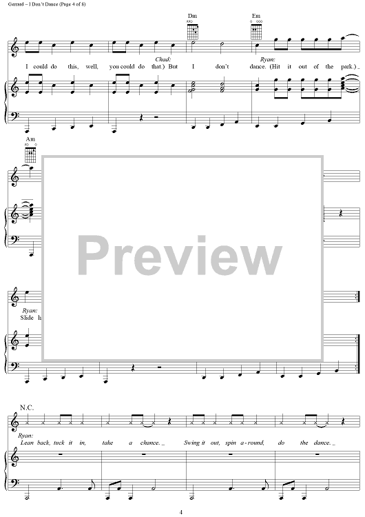 "I Don't Dance" Sheet Music by Matthew Gerrard