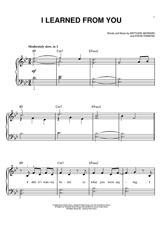 Digital Sheet Music for I Learned From You by Steve Diamond, Matthew Gerrard, Miley Cyrus scored for Easy Piano; id:402744