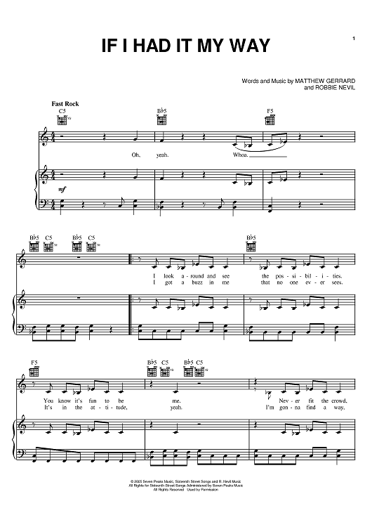 Digital Sheet Music for If I Had It My Way by Matthew Gerrard, Robbie Nevil, Emma Roberts scored for Piano/Vocal/Chords; id:384997