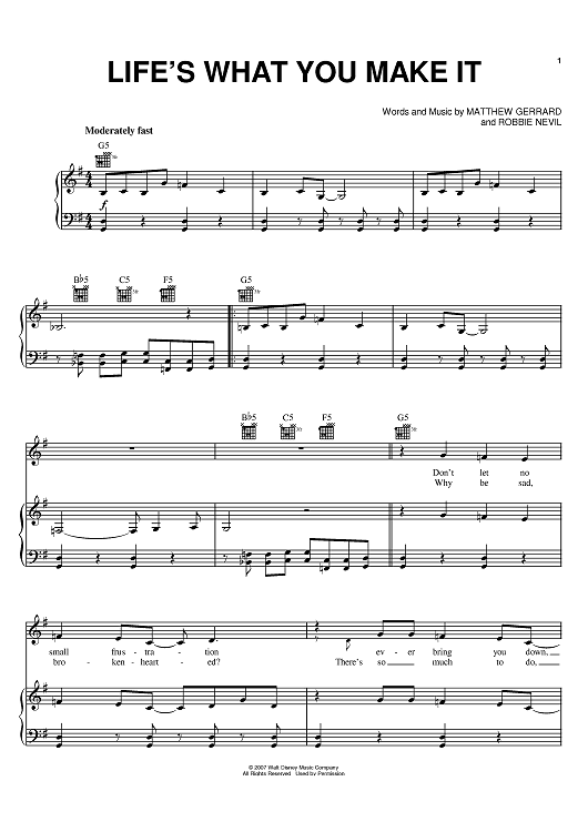 Digital Sheet Music for Life's What You Make It by Matthew Gerrard, Robbie Nevil, Miley Cyrus scored for Piano/Vocal/Chords; id:401100