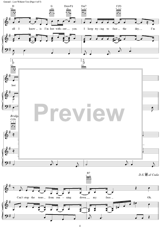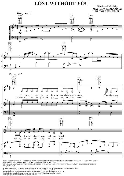 Digital Sheet Music for Lost Without You by Jaci Velasquez, Bridget Benenate, Matthew Gerrard scored for Piano/Vocal/Chords; id:315886