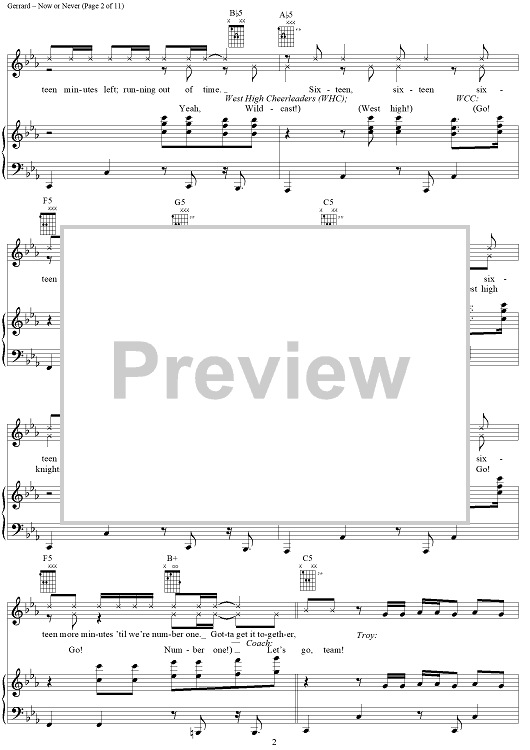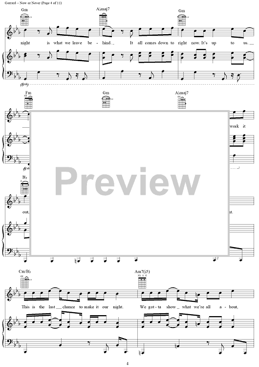 Digital Sheet Music for Now or Never by Matthew Gerrard, Robbie Nevil scored for Piano/Vocal/Chords; id:404975
