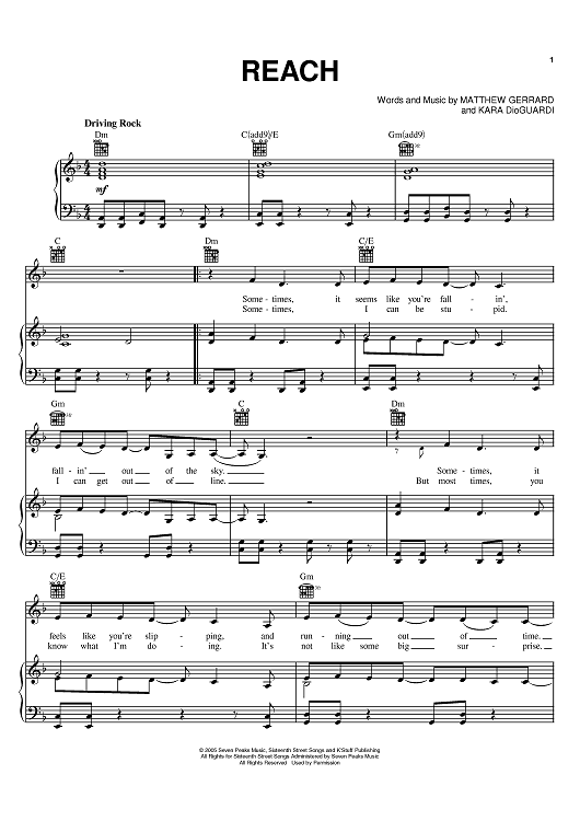 Digital Sheet Music for Reach by Matthew Gerrard, Kara DioGuardi, Caleigh Peters scored for Piano/Vocal/Chords; id:384999