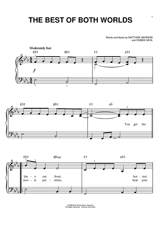 Digital Sheet Music for The Best Of Both Worlds by Matthew Gerrard, Robbie Nevil scored for Easy Piano; id:402749